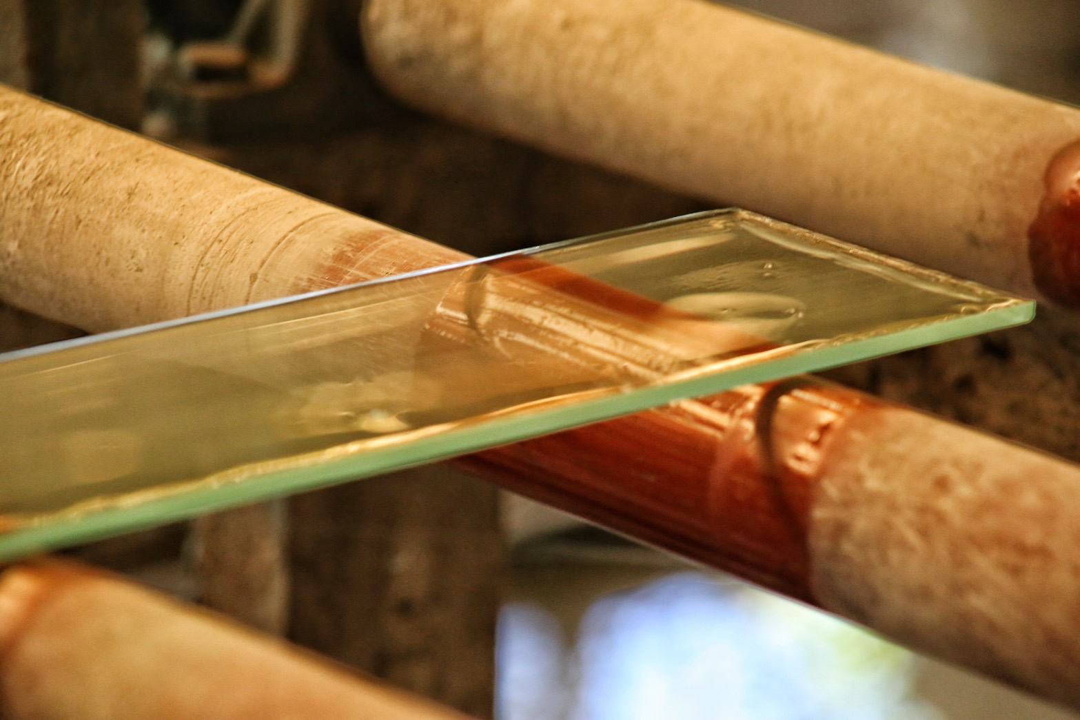 กระจกที่ผ่านการหลอมผลิต ย่อมมีสิ่งสกปรกและวัสดุปนเปื้อน